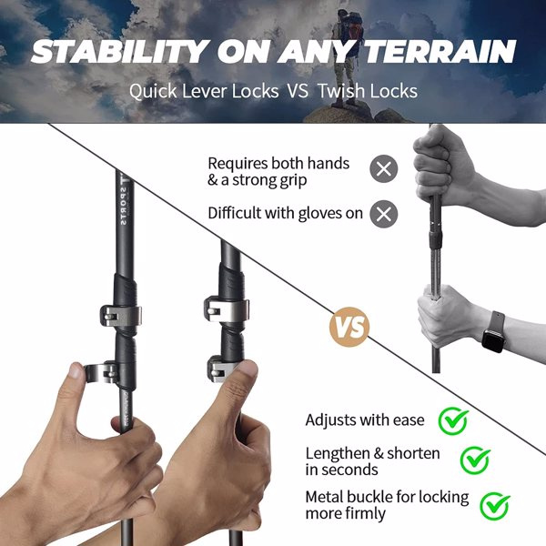 [High Quality Strong Value]Built with "Light Aircraft Grade" aluminum that can withstand more force, is highly durable, and vital when hiking rocky terrain and frigid temperatures.